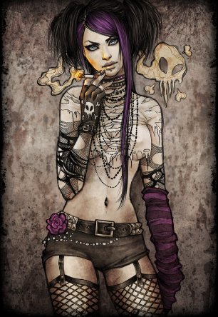 Plague The woman known as Plague makes her home in Tokyo and would define herself as an Edger-Terrorist of the mind when it comes to her chosen tactics. Having barely seen eighteen years, this young woman is as brutal as the world she somehow managed to survive, in terms of her unflinching tactics and feverish assault upon the corporate tiers of society. The irony is that she herself is the daughter of a pair of highly ranked Corpse, though she is loathe to acknowledge any connection to the objects of her vitriolic vengeance. Arriving on the scene only a mere three years ago, she and her younger brother had been kidnapped as part of an attempt by a rival corporation to drag her father from his present corporate liege-lords. Both she and her brother were abused both physically and sexually when her father and mother dug their heels in, refusing to concede to the other megacorps unwelcome overtures; despite the implication that their children would both be killed and worse if they refused. Privy to all of these interactions with their parents, Plague and her brother escaped after several months of captivity; while their kidnappers were busied with going after their mother in turn and found themselves alone on the streets. That first day away from their jailors saw her brother slain by a ravenous horde of devil rats in the sewers, while Plague herself only just escaped; letting go of her brother's hand when it was clear that he'd already released his hold on life. Falling in with a group of Edgers who picked up on her plight at a glance, Plague has since fronted several eco and psi-terrorist attacks on various corporations and because of her traumatic time with those who had kidnapped her, has a vicious streak when it comes to psychological warfare. Most often utilizing pirated disease or experimental treatment footage of men and women meeting horribly unnatural ends and broadcasting the feeds into the facility they're in the process of attacking, while using subliminal elements to give those within every reason to believe that they've likewise been dosed with whatever it is they're seeing on their terms or holos. Although beautiful she enjoys utilizing various methods of making herself appear as one of the most vile and loathsome streeters one might imagine. Because of these methods, her involvement in corporate strikes usually sees an inordinately high body count among the Corpse.