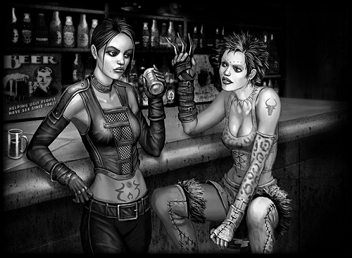 Lawless & Cranky Ask any Edger or knowledgeable streeter in Seattle who can help you when things are looking grim and you're down and out and almost to a one they'll grin and tell you Lawless and Cranky. Though little is known regarding the two women and their history, they are both well-known street-razors with a penchant for dirty humor and drinking would-be challengers under the table. Ironically, it is Cranky who is the more fun-loving and easy-going of the two and those in the know have hinted that it's one of Lawless's favorite jokes to remark about what a bitch her erstwhile companion is. Despite their shadowy pasts and penchant for fading in and out of the public eye, those in Seattle, whether Corpse or Lancer and especially their peers; will readily vouch for their professionalism and no-nonsense attitude when they're on an Op. Dubious though it may be, the two women seem to enjoy a reputation much like the fastest gun enjoyed back in the forgotten annals of the historical West, with would-be challengers stepping up now and again; hoping to make a quick name for themselves by dethroning the women. To date, they've proven that they're deserving of their kudos; though neither is the type to flaunt that reputation themselves. More than a couple of the seemingly omnipotent megacorps have tried unsuccessfully to round these two women into their stables of Covert Ops talent, whether through threat, blackmail, vast sums of cred or persuasion. Often remarked upon as being Edgers to the bone, Lawless and Cranky continue their lucrative partnership in the seedier sections of the Seattle Plex to this day.