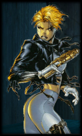 Widowmaker Not your typical Edger by any means, the woman known as Widowmaker was once a Lancer with as dark a past and record as any Corpse one might imagine. With little in the way of what one might consider scruples or morals she operated with only the bottom line in mind. Who she fulfilled contracts for or on, killed or discredited meant little to nothing to her as she traveled the globe flat-lining those she was paid to and not giving a second thought to the consequences or effects her coldly calculated practices might have on others. That all changed two years ago when her own world was ripped asunder by someone just like her. Having fallen in love with a talented Edger razor named Turmoil, Widowmaker had briefly halted her biz and taken the time to have a daughter, whom they'd affectionately named Hope. As fate would have it however, her history came calling when the Lancer known as Raven took up a contract to expunge her from the scene after one of her old Corporate targets finally managed to ferret out her involvement in a deal that fell through because of her direct intervention. The C-plast detonator turned the car she and her small family were in, into a smoking ruin; killing Turmoil and Hope and putting Widowmaker herself at death's doorway. Scoping the scene of the wreckage to assure herself that her job was complete, Raven was hit with a bout of until then, uncharacterstic empathy when she saw that her smart-drone had done more than simply strike her intended target. Though Widowmaker was unconscious and near death, Raven contacted a local street doc who managed to save her life and before subsequently fading into the shadows, settling the fee she'd agreed upon by performing a hit for the doctor. Widowmaker has since recovered, though she knows next to nothing about why she was targeted and just who it was that killed her lover and daughter. Since her recovery, she has taken up the same ideology as her dead lover and in tribute to her daughter has dedicated her life to making the world a better place for the children.