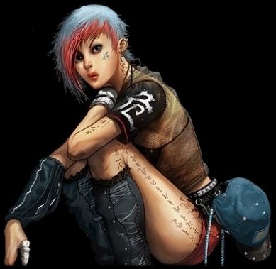 Slasher The woman known as Slasher has always possessed a natural agility and easy grace, qualities that earned her food and water as a child trying to survive on the streets. A pit-fighter in the back alleys of Techno Chiba, she began at the age of five; when she was found in an alley and given a butter knife before being thrown into a pit with six mastiff-sized devil rats and told to sink or swim. With Corpse slummers cheering both her and the rats on, she managed to kill all of the monstrous vermin before finally passing out from hunger and blood loss. Now 19, she still frequents the pit-fighting circuit, though these days she is usually pitted against street-razors who have likewise signed up for the dubious amount of glory and credit that can be earned by a successful fighter. Utilizing the credit she'd earned from her legion of victories, in her mid-teens, Slasher went under the knife of her then time lover, a street doc named Ripper. Since then, she and Ripper have drifted apart but she is still touted as the Champion of the Pit-Fights, though she only engages in the circuit when she's exceedingly low on funds. Most of her time is spent working the streets as an Edger, like any recognized top-gun however she still fields an occasional impromptu challenge by wannabes looking to make a name for themselves by taking her down. Thus far she's culled almost a hundred would-be razors from the streets of Lower Chiba as a result.